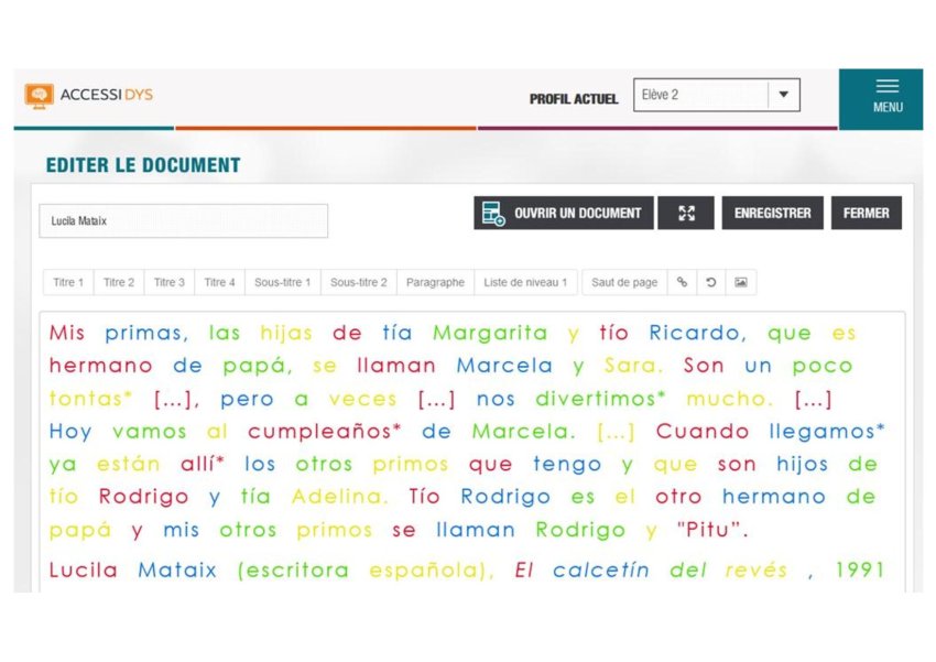 • Accessidys a généré automatiquement 3 versions qui répondent exactement aux besoins particuliers de ces élèves pour leur accès à la lecture