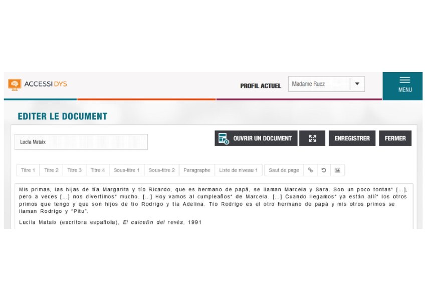 • l’enseignante a copié/collé son document original dans Accessidys avant la séance
