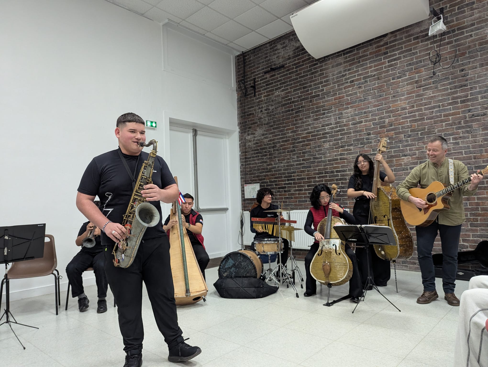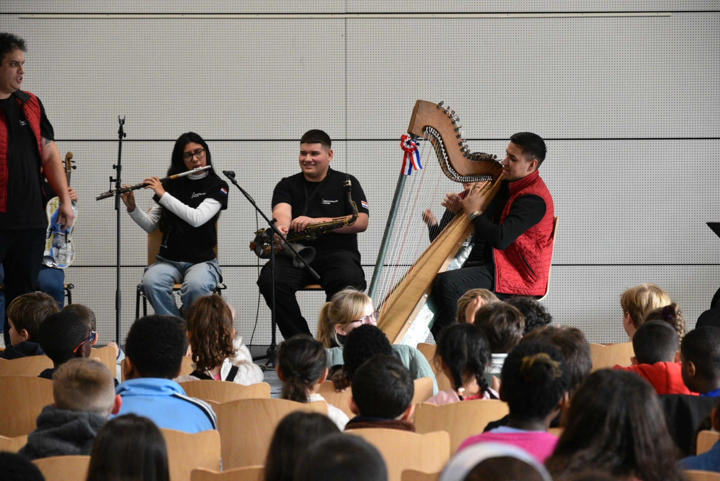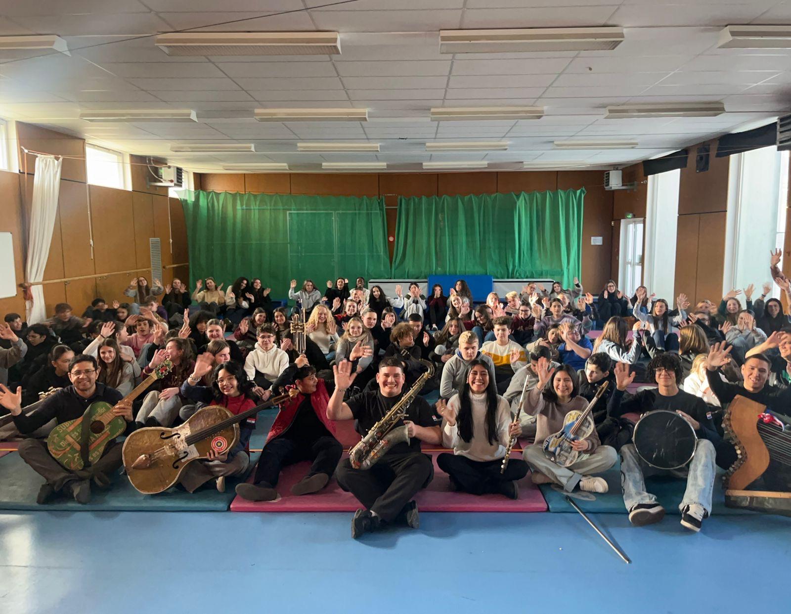Le collège Robespierre a eu la grande joie d’accueillir à nouveau un groupe de l’orchestre paraguayen Cateura. Les musiciens ont été présents sur la métropole du 14 au 20 janvier 2026 à Oissel, Canteleu et Saint Etienne du Rouvray. Les interventions auprès des scolaires, en journée, ont été soutenues financièrement par le SMEDAR. C’est ainsi que le message de Cateura « El mundo nos envía basura, nosotros le devolvemos música » a pu parvenir aux oreilles de presque un millier d’élèves. Certains d’entre eux ont même eu la chance de pouvoir essayer les instruments. Puis, en soirée, des concerts auprès du grand public au bénéfice de l’orchestre ont été organisés par le FSE du collège.
