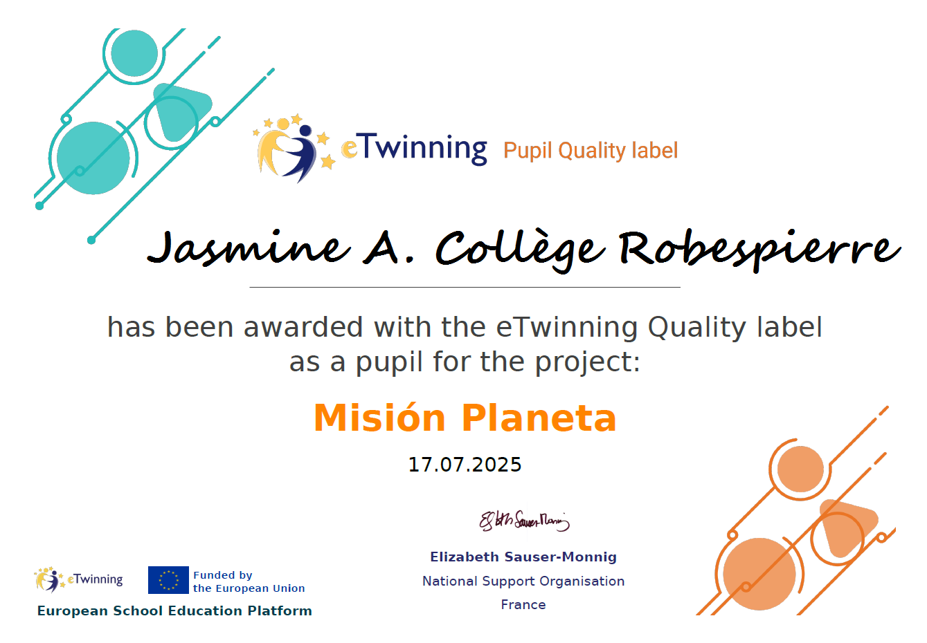 Les élèves peuvent être fiers du travail réalisé dans ce projet et du label obtenu : ils ont progressé à la fois en langue lors de leurs échanges en espagnol avec leurs partenaires mais aussi en compétences numériques.¡Misión cumplida !